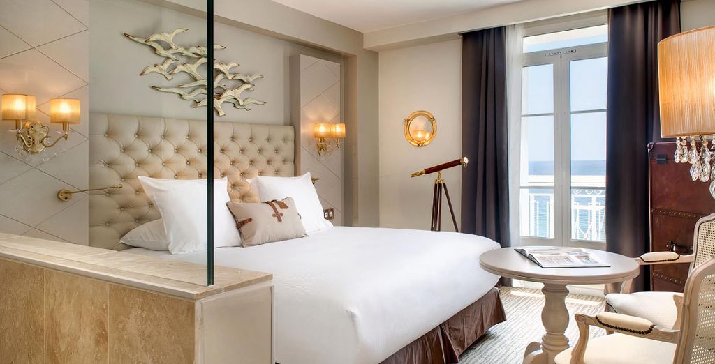 Les chambres ou suites offrent de beaux espaces décorés avec élégance, entre tête de lit capitonnée ou mobilier de caractère. Elles sont aussi dotées d’équipements modernes, avec Wi-Fi gratuit, machine à expresso, TV HD… Profitez de votre séjour pour vous attabler dans la brasserie Le Navigateur. Une belle escapade culinaire vous y attend, avec une cuisine aux saveurs méditerranéennes, sublimant les produits locaux de la mer.