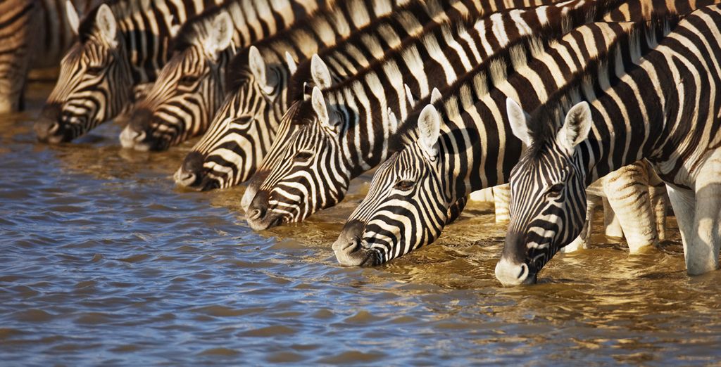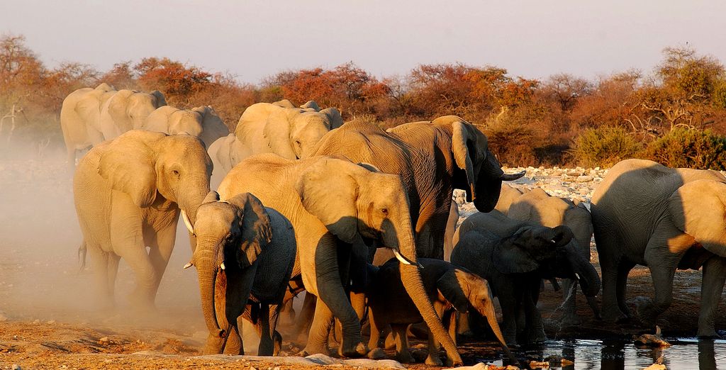 Bien que sa voisine l’Afrique du Sud soit mondialement connue pour ses safaris, il est bon de rappeler que la Namibie est l’un des principaux sanctuaires de la faune Africaine. Au Parc national d’Etosha, vous pourrez croiser les « Big Five » (le lion, le léopard, l’éléphant, le rhinocéros, le buffle d’Afrique), mais aussi pléthore de mammifères (114 espèces, dont la girafe, le zèbre, l’impala, la gazelle, la hyène, le koudou, ou encore le gnou bleu) ainsi que 340 espèces d’oiseaux. Durant le safari, ne pas omettre de faire un détour par l’Etosha Pan, un lac salé asséché, qui, durant la saison sèche, attire des milliers d’animaux. Pour profiter au mieux du spectacle permanent qu’offre le parc, séjournez au Halali Camp. Situé en plein centre, il offre des chalets avec vue sur le point d’eau.