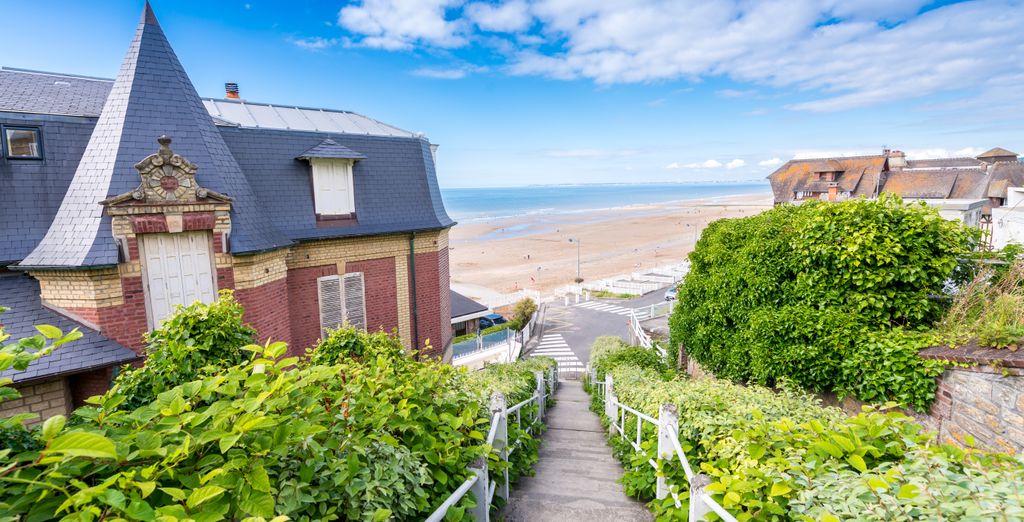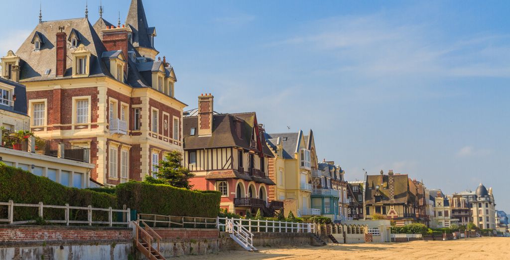 La Côte Fleurie déploie ses plages de sable fin bordées de villas Belle Époque et de cabanes colorées, créant une atmosphère balnéaire élégante unique. La plage de Deauville, longue de deux kilomètres, se distingue par ses Planches, promenade en bois de 643 mètres jalonnée de cabines portant les noms des stars du cinéma américain ayant fréquenté le festival du film. La plage de Trouville, plus familiale, attire les amateurs de fruits de mer grâce à ses nombreux restaurants de poissons installés face à l'océan. La plage de Cabourg, longue de quatre kilomètres et bordée par la promenade Marcel-Proust, offre un cadre romantique apprécié des couples. Le Village Pierre & Vacances Normandy Garden constitue une base familiale idéale pour explorer ces plages, combinant confort et proximité des sites d'intérêt.