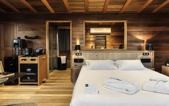 Pour votre séjour, vous aurez le choix entre la Suite Luxe avec Jardin (Le Studio), la Suite Luxe avec Bain à Remous (Le Logis), la Cabane Premium avec Bain à Remous (Le Cabanon), le Lodge Premium avec Bain à Remous (Le Lodge), la Roulotte Premium avec Spa (Le Refuge) ou la Cabane Luxe avec Spa (La Réserve).